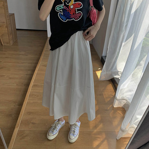 白色半身裙女夏季高腰花苞裙中长款遮胯显瘦超仙森系a...