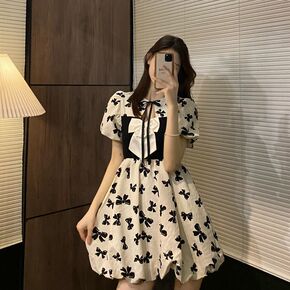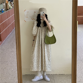 韩版碎花连衣裙夏季新款女装高腰显瘦长款短袖学生泡泡...