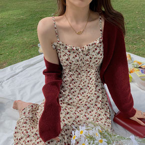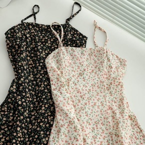 2022夏季复古小清新吊带短裙小个子碎花裙子学生修...