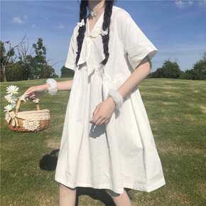 新款小清新海军领设计小众海军风连衣裙女...