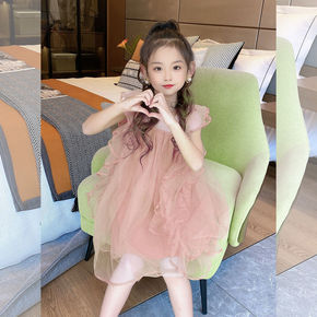 女童夏季优雅甜美公主裙儿童中大童小学生网纱裙沙滩裙...