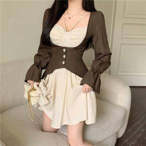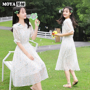 2022法式新款可盐可甜裙子桔梗初恋雪纺学生碎花吊...