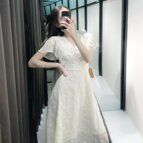 纯欲风穿搭雪纺女夏短袖花瓣袖小个子收腰短裙超仙in...