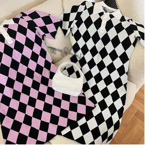 人间蜜桃连衣裙女年早新款时髦少女感棋盘格牛仔连衣裙...