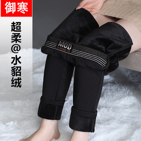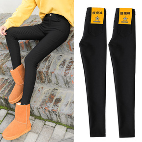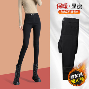 加绒打底裤女外穿秋冬季高腰加厚紧身保暖黑色小脚铅笔...