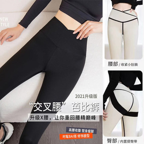 【长期现货】速卖通透视网纱交叉捆绑打底裤弹力健身裤...