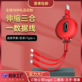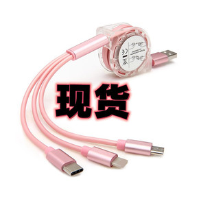 新款夜市圆形一拖三数据线适用于苹果 type-c ...
