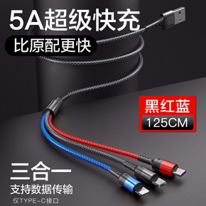 三合一充电线白色适用苹果安卓type-c一拖三车载...
