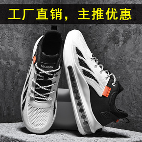 夏季男鞋新款飞织透气网鞋百搭运动休闲男士防臭薄款夏...
