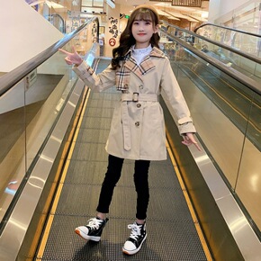 女童风衣外套春秋英伦风中大童儿童秋装外套2021新...