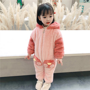 儿童连体睡衣秋冬装小童宝宝珊瑚绒卡通动物可爱加厚法...