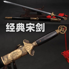 钢剑冷兵器春秋古剑 镇宅装饰压铸硬剑未开刃 红油漆...