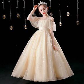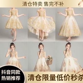 现货六一节日礼服女童花童公主裙生日走秀露背网纱蓬蓬...