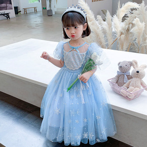 女童2022夏季新爱莎公主网纱泡泡袖连衣裙儿童可爱...