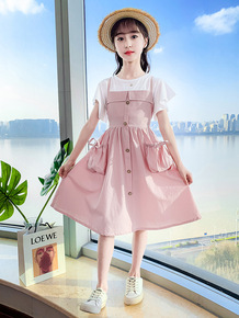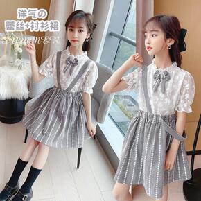 女童韩版夏季甜美连衣裙洋气新款中大童韩版时尚圆领可...