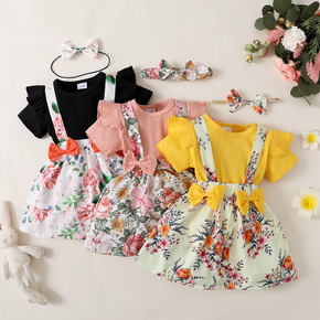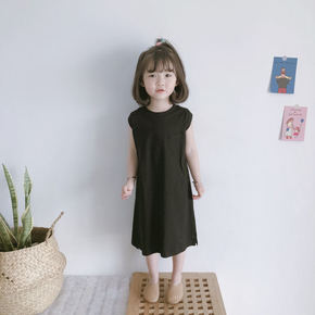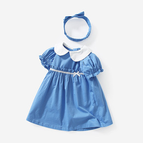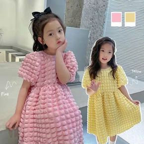 童装夏季新款纯色休闲风女宝连衣裙外出服装泡泡袖公主...