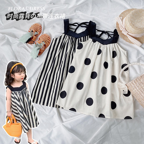 女童波点吊带裙2022夏季新款儿童韩版系带连衣裙宝...