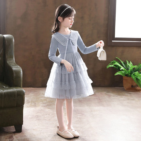 女童冰雪蓝公主裙长袖爱莎公主连衣裙女孩六一演出礼服...