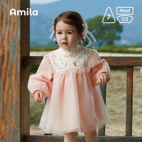 儿童连衣裙22春装新款女童宝宝纱裙刺绣汉服连衣裙网...