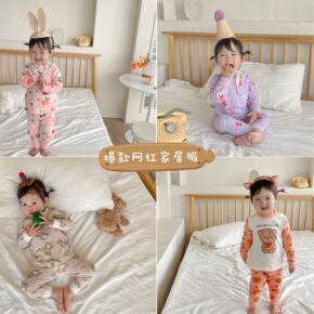 【小码福利款】韩版修身儿童家居服纯棉睡衣羊毛拉架保...