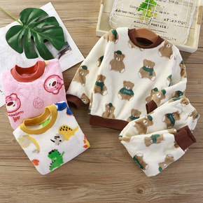 儿童保暖内衣套装AB面卡通无痕男童秋衣裤中大童小孩...
