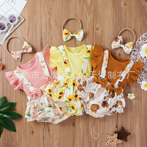 欧美童套装婴儿 2021夏季 飞袖上衣T恤 +印花...