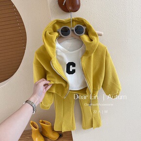 跨境童套装 女童套装 2021新款儿童字母印花卫衣...