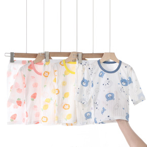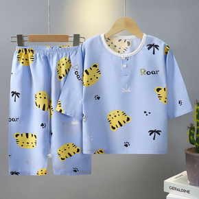 儿童睡衣绵绸套装夏季七分袖薄款女童空调服男童家居服...