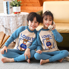 儿童秋冬保暖内衣套装男童女童三层夹棉秋衣秋裤宝宝棉...