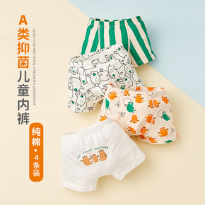 儿童内裤男童棉抗菌平角裤中小童大童青少年男孩四角宝...
