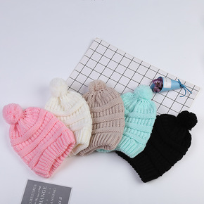 201冬季新款欧美时尚儿童球球帽 毛线帽子加厚保暖...