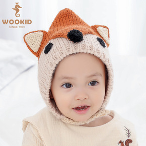 wookid跨境帽子冬狐狸手工帽男女儿童保暖毛线帽...