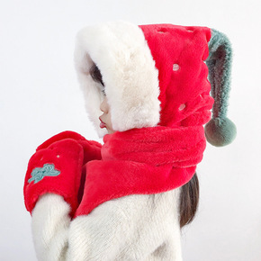 宝宝冬季帽子围巾一体女童保暖可爱超萌护耳帽男童加厚...