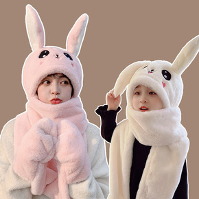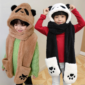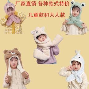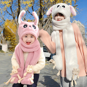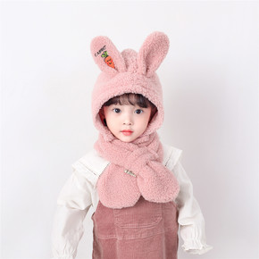 冬季儿童帽子围巾一体男女童加厚保暖毛绒可爱宝宝防风...
