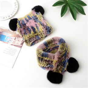 小孩帽子冬季户外带围脖套装纯色户外毛线帽加厚保暖针...