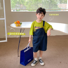 韩版童装2022夏款儿童背带裤大口袋0-3岁宝宝牛...