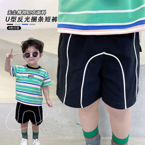 2022夏季童装儿童短裤外穿韩版夏装薄款侧边拼色卡...