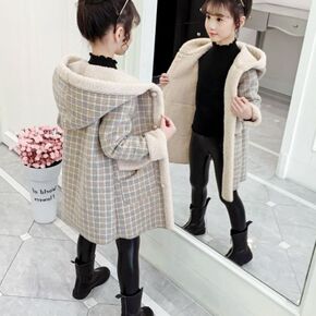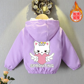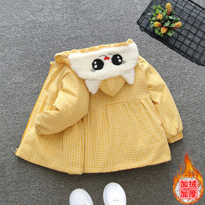 女童加绒棉衣外套春秋冬装2022新款儿童网红卡通格...