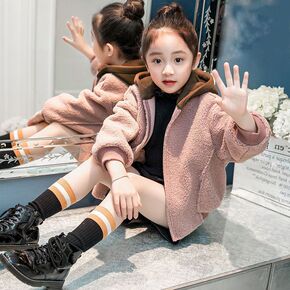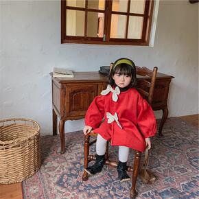 跨境童装批发女童外套秋冬儿童双面呢料大蝴蝶结夹棉厚...