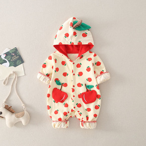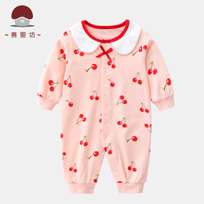春季新款A类纯棉婴儿连体衣水果樱桃可爱女宝宝哈衣爬...