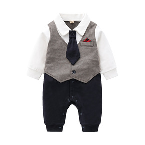 2021春季新款男孩绅士哈衣满月服婴儿连体衣套装 ...