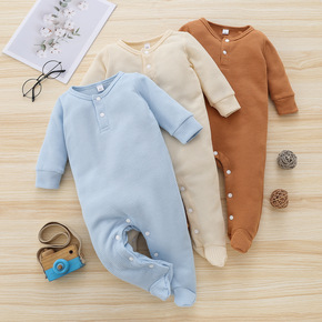 ins连体衣婴儿秋 男女新生儿简约纯色长袖长腿包脚...