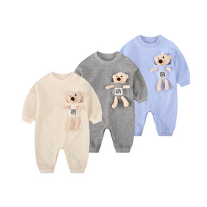 韩版婴儿衣服秋冬华夫棉保暖可爱小熊哈衣儿童加绒宝宝...