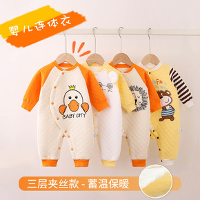 婴儿连体衣秋冬薄棉夹棉超洋气幼儿衣服春秋加棉保暖可...