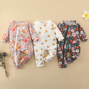婴幼宝宝长袖爬服印花拉链开衫连体衣新生儿多色可选一...