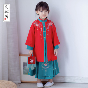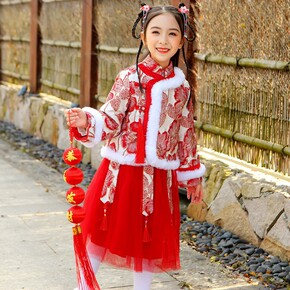 汉服女童唐装棉袄超仙中国风儿童古装秋冬装女孩加厚裙...