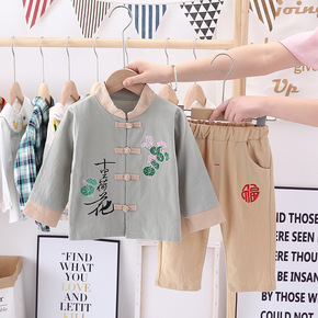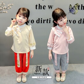 儿童民族风套装秋装新款女童宝宝薄款长袖小童唐装汉服...
