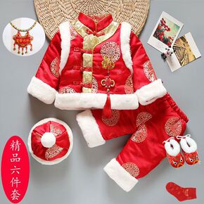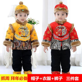 男童唐装中国风加厚新年拜年服 男童周岁抓周礼服冬季...