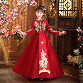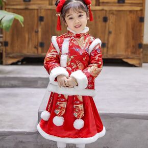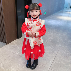 汉服女童冬装拜年服儿童秀禾服唐装过年喜庆女孩新年装...