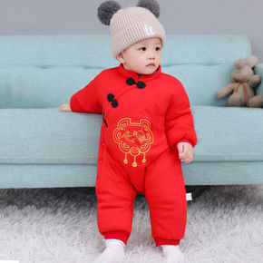 婴儿拜年服女宝宝连体衣秋冬装加厚新生儿满月过年衣服...